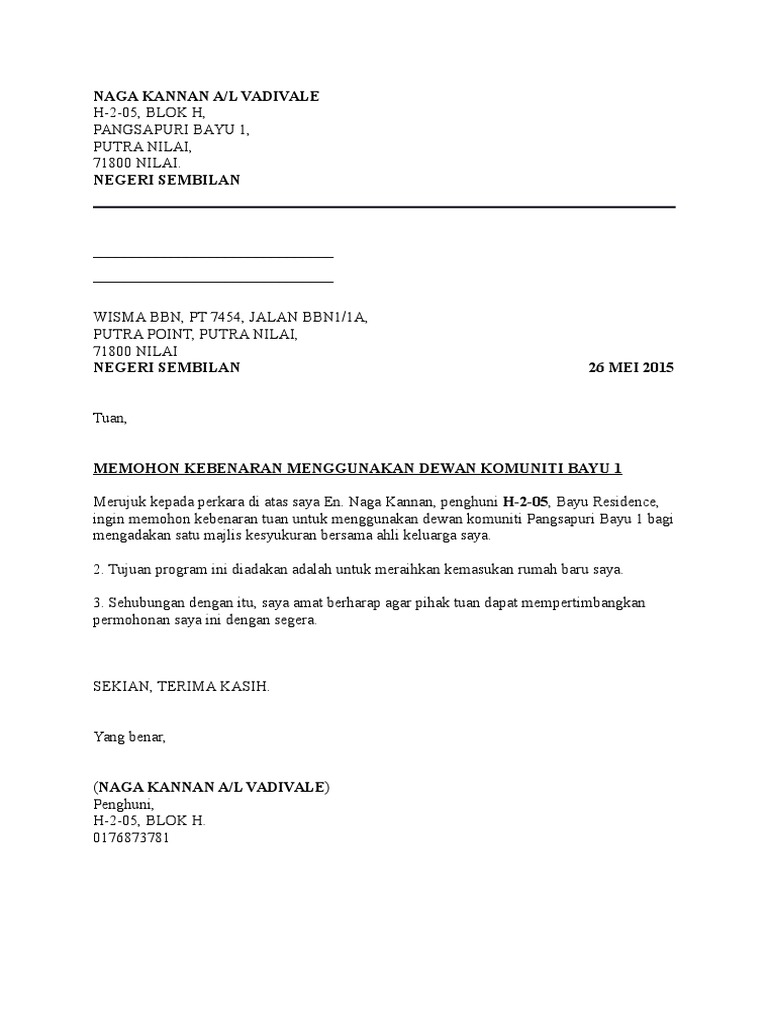 Surat perjanjian sewa menyewa gudang surat perjanjian sewa gudang yang bertanda tangan di. Contoh Surat Rasmi Menggunakan Dewan Adalah penting untuk memastikan surat yang ditulis adalah menggunakan format yang betul supaya surat yang dihantar nampak lebih profesional. Untuk memohon kebenaran menggunakan dewan bagi tujuan tersebut.